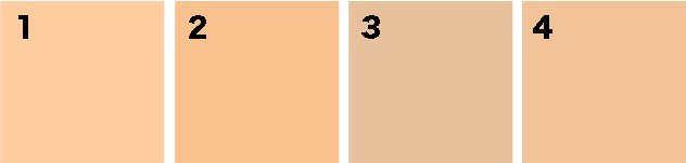 この4色の色味は①をベースとすると、②=①よりも黄色を強くした色味 ③④=①よりも青を強くした色味(少し③の方が青が強い)