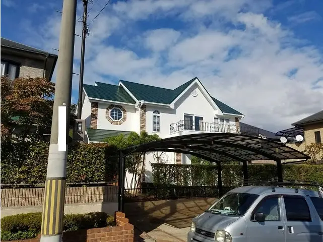 施工前は屋根がグレー系だったのに対し、施工後は濃いグリーン、外壁は黄色味がある白から青みのある白に。家のデザイン性が際立ちました。艶消し塗料を使うなど、細かい部分にもこだわりを入れています。